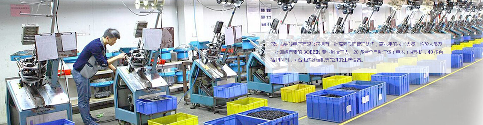 深圳市鉑駿電子有限公司,成立于2011年,廠(chǎng)房面積5000㎡員工100人,是一家集高頻變壓器(電木)骨架、SMD貼片、BASE底座、等產(chǎn)品自主研發(fā)、制造、銷(xiāo)售、服務(wù)為一體的綜合性企業(yè);擁有多臺(tái)全自動(dòng)電木注塑成型機(jī)、插針機(jī)、毛邊處理機(jī)、火花機(jī)、高精密磨床、銑床、鉆床、CNC等先進(jìn)的生產(chǎn)設(shè)備和完善的質(zhì)量管控體系;具有雄厚的BOBBIN、SMD、BASE、等產(chǎn)品模具設(shè)計(jì)開(kāi)發(fā)能力;擁有強(qiáng)大的(BOBBIN)產(chǎn)品制造能力,可同時(shí)滿(mǎn)足多家中、大型變壓器廠(chǎng)商的供貨計(jì)劃。經(jīng)過(guò)鉑駿所有員工的不懈努力,于2014年通過(guò)ISO9001:2008國(guó)際質(zhì)量管理體系認(rèn)證,產(chǎn)品全面導(dǎo)入無(wú)鹵素環(huán)保控制,保證產(chǎn)品100%符合ROHS要求,成為您在BOBBIN產(chǎn)品上的最佳選擇供應(yīng)商 ......更多>>
